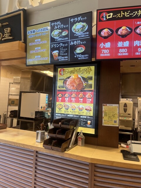 フードコート内にあり、お肉の量、ご飯の量チョイスでき、見た目も食欲をそそります。