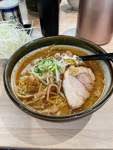 味噌ラーメン、トッピングに白髪ネギを注文。白髪ネギは別皿でたっぷり。