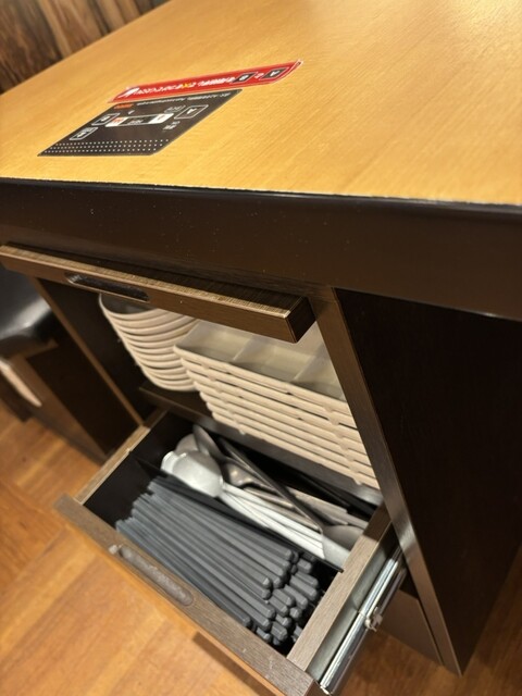 お箸・皿は、席の端っこに有ります