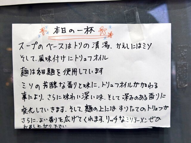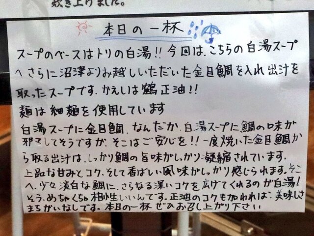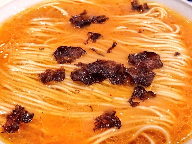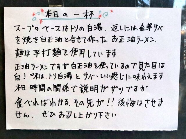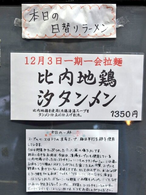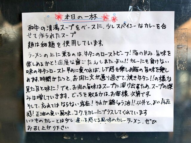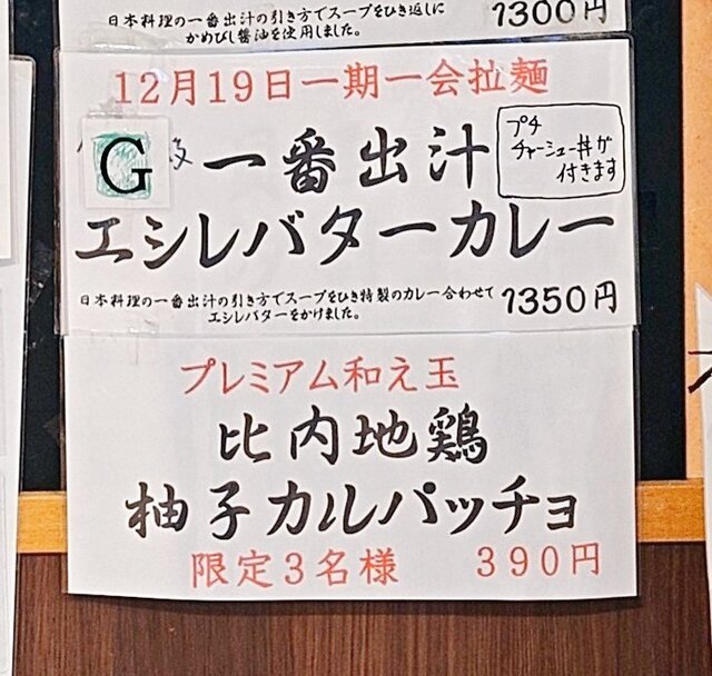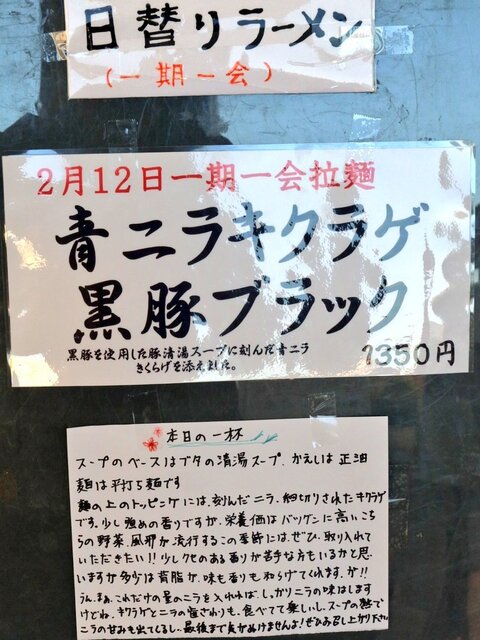 本日の一期一会拉麺は「青ニラキクラゲ 黒豚ブラック」先ずはスープを一口。久し振りの背脂醤油味とニラの香り、キクラゲの食感も良い感じですね。プレミアム和え玉の「羊タンハム カルパッチョ」も初めて食べる羊タンも意外と美味しかったです、本日も御馳走様でした。