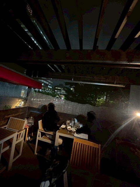 賑わっている1階の立ち飲みスペースを抜けて細い階段をトントン、テラス席は3階です。4人掛けテーブルが一つ、2人掛けが二つありました。小ぢんまりとした秘密基地です。