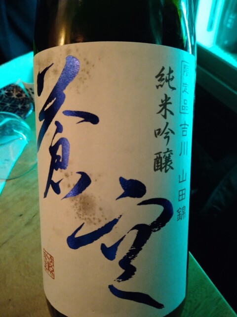 蒼空:久しぶりに居酒屋で拝めました。甘味旨味。滑らかなながらもたつかない、尖ってないけどどこか清涼感を感じる。後味は尾を引くようなものはない。うまし。