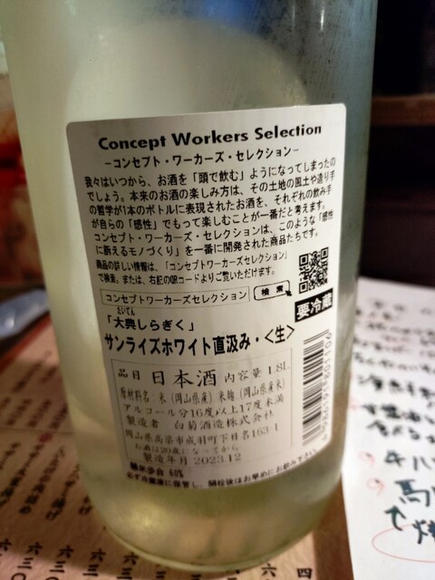 三杯目は大典白菊SUNRISEコンセプトワーカーズセレクション直汲み生。蜜系の甘みたっぷり。生系のお味。