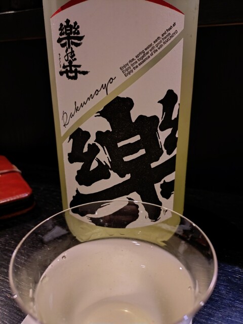 楽の世。やや硬めの香り。熟成感ある酸味強い。甘みもややある。旨味も大きい。