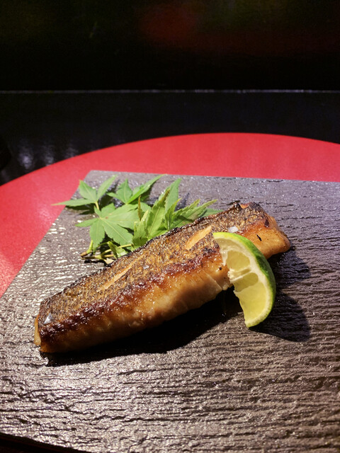 オイルで焼いたイサキは洋風な食感と和風の香りで贅沢な一品でした。