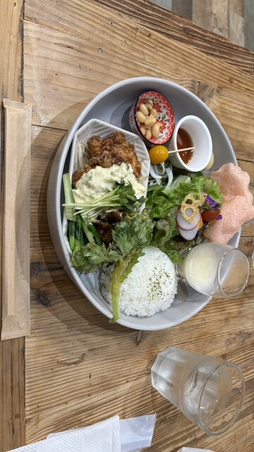 予約なして、オープン丁度くらいにお店に着きました。室内ならランチが食べると言われたんですが、運良く足湯でランチを食べることになりました。...