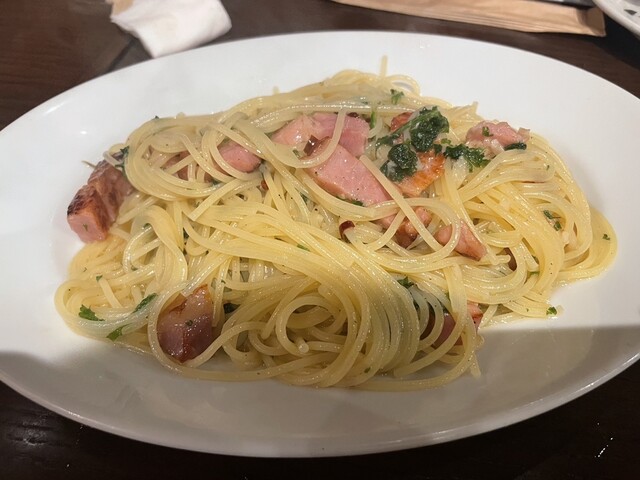 ベーコンのペペロンチーノとポテトサラダもオーダー
