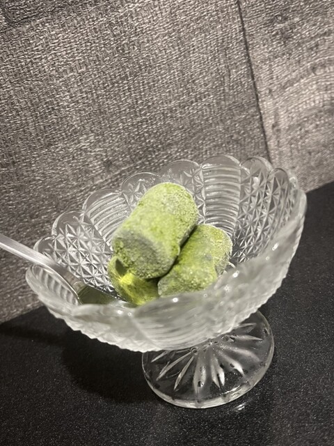 クールダウン!鍋を食べて汗をかいた後のアイスは格別で抹茶の粉がかかっていて抹茶好きにはもってこいのアイスでした!