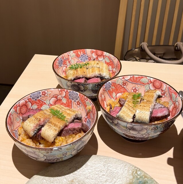 鰻と和牛のひつまぶしはワサビと山椒をかけると味に変化を出しながら最後の一口まで楽しめます。