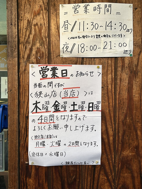 木・金・土・日営業(月火は秩父店)