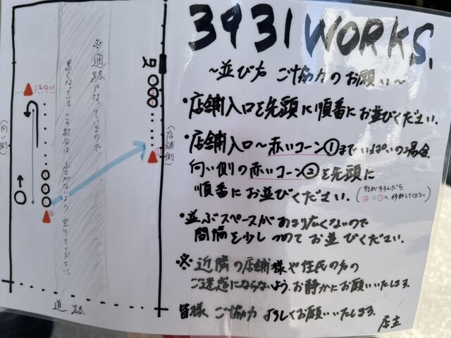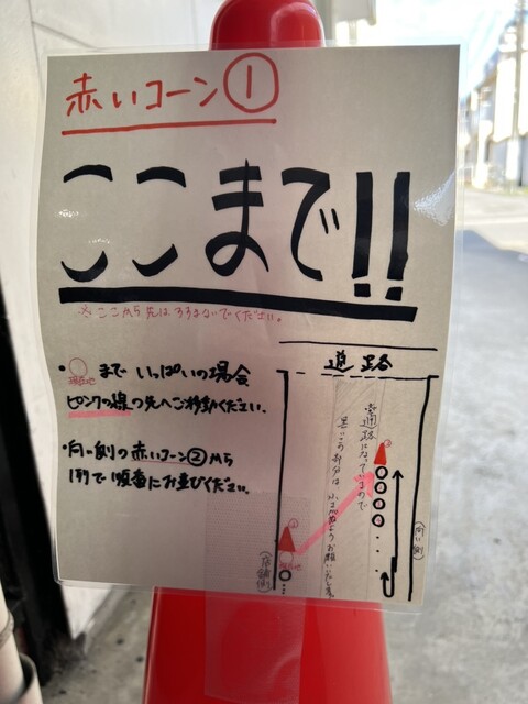 また大人気なお店なので、ちゃんと整列するようにお店の前にはカラーコーンとPOPで注意書きがあります。