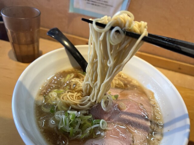 醤油がキリッと立っている醤油スープに煮干し油が入っており、煮干しの香りが立っています♪