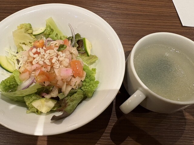 セットのサラダとワカメスープ