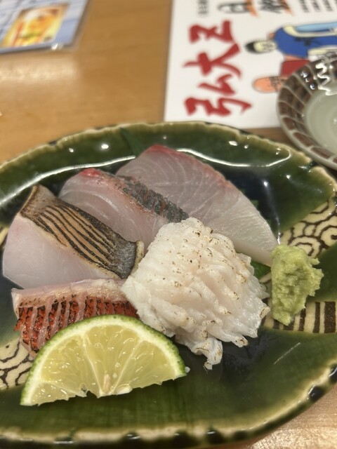 サワラとキンメ炙り、縞鯵、カンパチ、穴子焼き霜
