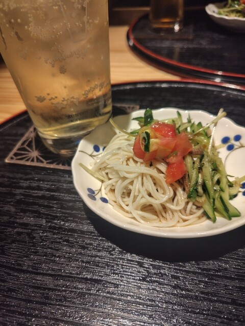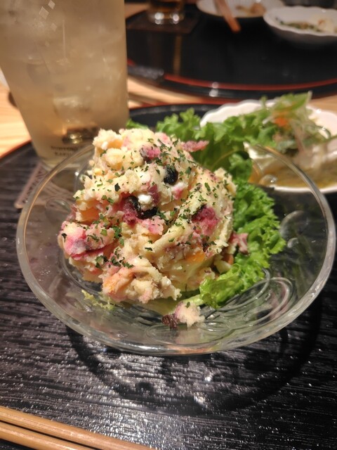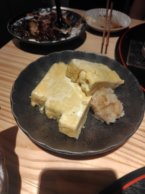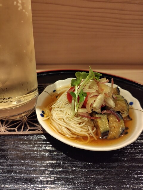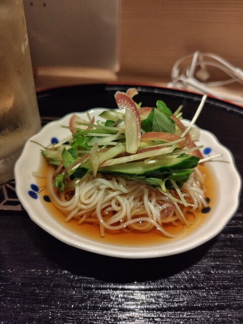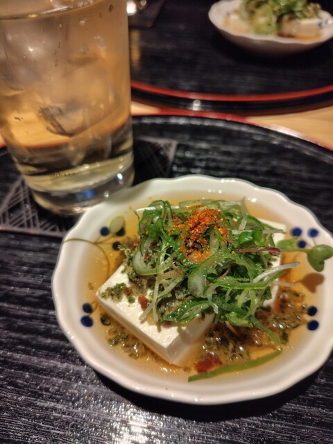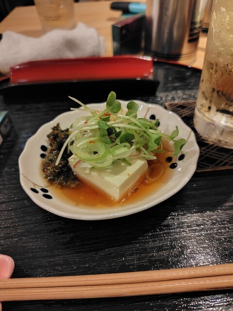 鶏むね肉とオクラのゴマ味噌和えは、割いたむね肉とオクラをゴマ味噌で絡めており、ゴマ味噌の甘さが程良い感じでお酒が進む一品となっておりました。夏で食欲低下している中でもあっさり食べられました。
