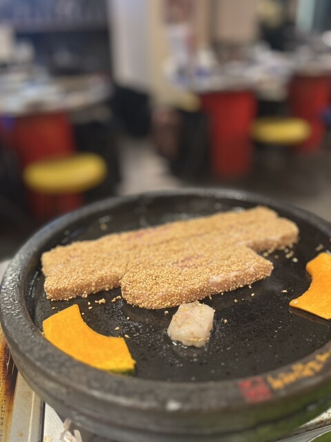 網ではなく鉄板の上でお肉を焼きながら食べ、最後の方でお兄さんが目の前でチャーハンを作ってくれました、ハート型にしてくれてエンタメ性抜群でした。美味しかったです。店内が可愛くて良かったです。