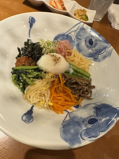チヂミはすごい厚みで中はしっとり♪スンドゥブチゲは海鮮の味わいがしっかりと出ていました。プルコギは真ん中の玉子が宝石のようにキラキラツヤツヤしていて、崩して混ぜて食べたら旨みが口中に広がりました。