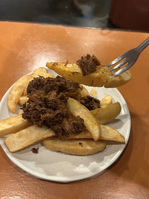 初めてサイドメニューを頼みましたが、ハブ酒に合いそうなプルドポークポテトをお願いしました。