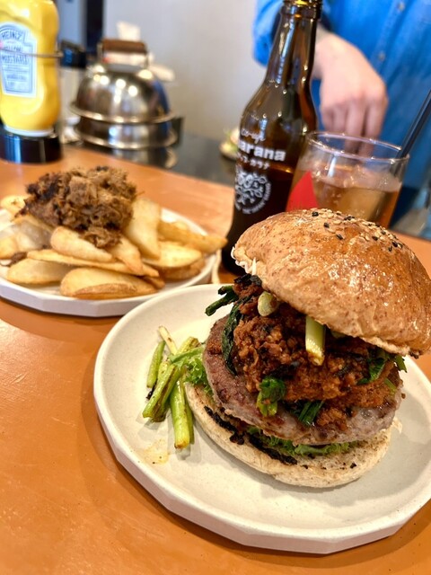 農家の息子である店主の出身地の、北海道名寄市風連地区でとれた甘みの強い「雪化粧かぼちゃ」を贅沢に使用したスイーツみたいなバーガーです。