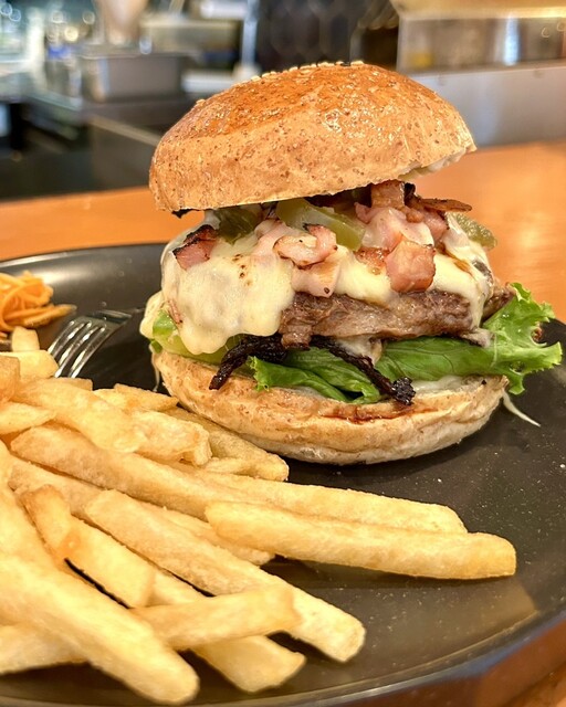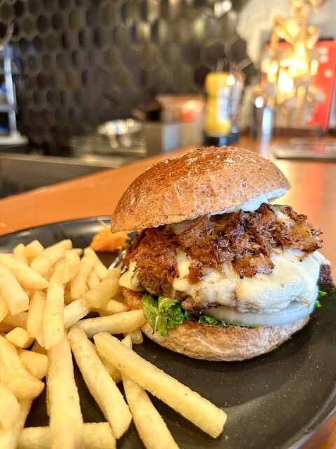 フードはカレーもありましたが昼に食べたので、今月のマンスリーバーガー(2回目)をいただきました。