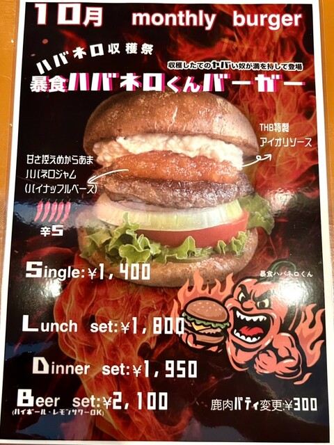 先月のマンスリー「鹿肉フィリーチーズステーキバーガー」も今月は食べられるそうで、鹿肉バーガーの2大頂上決戦になっています。