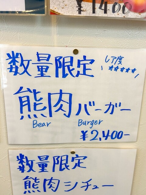 熊肉チーズバーガーなのは食べるまで知らなかったです。