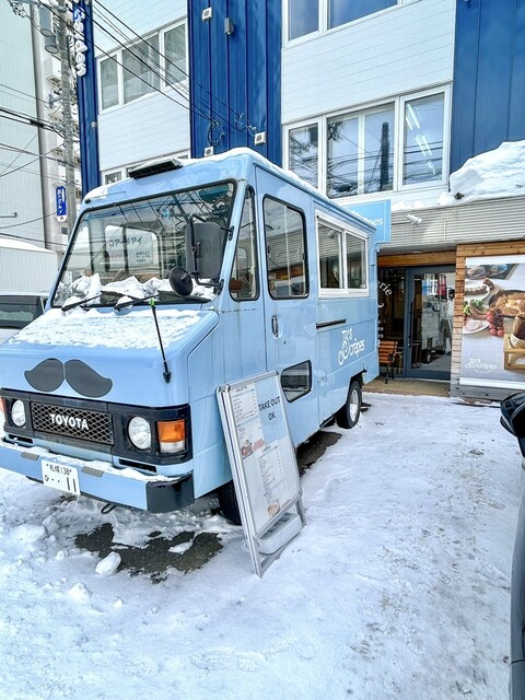 日本語が早口で気さくな店主とペールブルーの空間・キッチンカー。