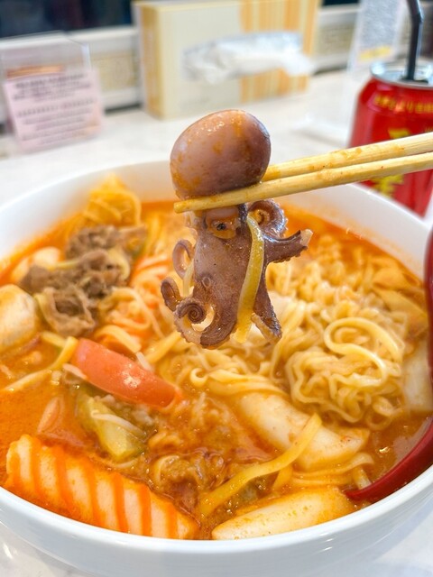 豚タン塩、スパムミート、ハチノス、ブンモジャ、白きくらげ、くらげの頭、青梗菜、ほうれん草、魚卵入り団子、カニ風味すり身棒、油条、いいだこ、揚げ湯葉ロール、豆皮、しめじ、ラム肉