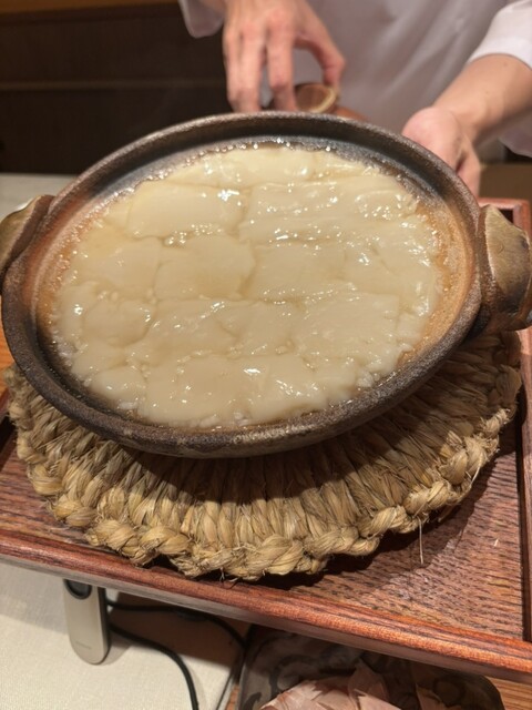 初訪問で激賞したので,早速裏を返しに行ってみた。2回目なので,入り口の2段のステップも難なくこなしたが,やはりあれはなんとかしたほうが良いと思う。ここで「惜しい」と言ったのは,多分に主観的にすぎる話しであって,誰も惜しいとは感じてやしないこともあるという前提の話である。18:00に予約したので,カウンター席には先客はおらず順調な滑り出しであったが,徐々に客が入って来てやがて満席になると,まるで安い居酒屋よのうな喧騒になった。補聴器の老人では耳に響いてその場にいるのが辛いほどである。客は20,30代の若者たちであるが,どうしてマナーを守れないのだろう。これは食べログや東カレで紹介されたニューカマー店でよくみられる現象である。食事の時に,いわんや他人もいる店内で響き渡るような声で話さない,笑わないことは教わらなくても知っていて当然なマナーである。なん等かの理由でにわかに羽振りがよくなっだだけで育ちが悪いのだろうが,教養さえあれば身につくものである。
