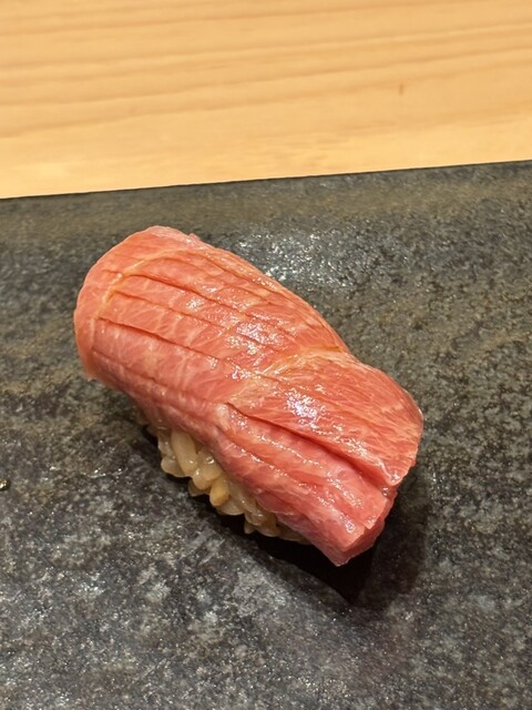 四谷すし匠はつとに有名で,新参者は出入りできず,行ったことはないが,麻布台ヒルズに新店舗を構えたいうのでチャンスがあるかもと電話してみたら,キャンセル待ちで受付てもらえて1月ほどして初訪問となった。一度行けば次の予約が取れる仕組みである。予約は約半年後になったが,その間にキャンセル待ちがまた来てそれにも行ったら、間隔は3ヶ月になったという訳である。そんなんでもう4-5回は行ったので大体のようすはわかったつもりでいる。鮨の旨さは当然として,一言で評すればオーナー中沢氏演出のショーが始まり,客はそれに参加して,満足して次回のショーを予約して喜んで帰るという構図である。今のスターはすし匠の番頭杣木氏である。すし匠は弟子の育成に熱心で吉田松蔭の彫刻を冷蔵庫の扉に配して店の名前も寺子屋がつく。教育は全寮制の体育会系であるから、そこで長年寮長をして人望を得たのが彼であり,その寝食共にした信頼関係はゆるぎないものとなり、店の流れは阿吽の呼吸で,まるで一つのチームのショーを見るかのようである。酒のアテと握りが交互に出され,その間にも客に退屈させないように等しく話し掛ける。それは客に押し付けがましいところはまるで無く、ショーに参加して楽しい気分にさせてくれる。鮨の話をすると,シャリの旨さが卓越している。赤酢と白酢のシャリを使い分ける。箸でとると割れてしまいそうな握りであるが,今風に小降りで食べやすく,どれもハズレはない。握りは一通りコースで出たあと,コースに入っていなかったものを中心に本日のネタが示されアラカルトで注文出来る。いくつ頼んでも良い。最上等の大トロを巻いてもらうこともできる。握るのは杣木大将だけだから客も変な気遣いもいらす安心で切る。料金も常識の範囲であれば、5をこえることはない設定みたいなので,気遣いなくたくさん食べた方がお得な気がする。運が良くチケットが手に入るならば金を借りてでも参加するのをお勧めする。最後に一つご注意を。次回の予約ができるのは1組だけだから,その権利を同行者に譲ってしまうと自分は途切れしまう。情けはかけないことである。