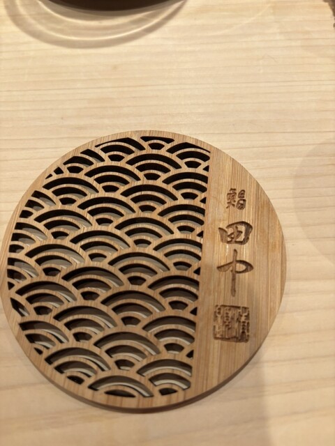 焼鳥「利行」の入っているビルの一階にあって,以前利行に行った時に,若いがミシュランの星をとって人気らしいと聞いて、電話で予約して約1ヶ月くらいで初訪問となった.まだ新しい設えで,潔良いほどシンプルな造作である.飾りものは生花が一つだけだ。親方は一流店ならまだ若い衆と呼ぶのがちょうど良いくらいの青年のように見えたが,二人の弟子を従えている。