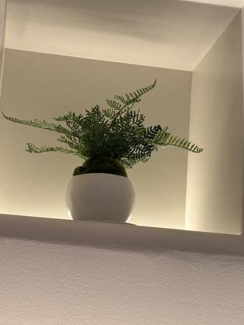 世の中にはレジェンドと呼ばれる有名シェフは山ほどいるが,中にはSNSで醜態を晒している巨匠もいるが、ラメゾンコンフォータブルの赤坂洋介シェフは華麗なる経歴があるのに誠に謙虚である。残念ながらピエールガニェールには20年前に青山のプラダの前にできた時から気にかけていたが,ANAホテルに移転して今年初めに閉じてしまい,縁がないままであった。アランシャペルと兄弟弟子であったピエールガニェールは,パリの三つ星の常連で,その彼のもとで長年修行し,やがて右腕となり東京店を任され15年連続二つ星という輝かしい実績を持って今年の5月にオーナーシェフとして麻布十番に降臨した.本日初訪問であったがエレベーターを降りると,ソムリエとシェフ自らが出迎えてくれた。店は窓の無い真っ白い空間で壁面には苔玉のミニ盆栽がいくつも置かれ,テーブルクロスは無くパレットのようなランチョンマットが置かれていた.このスマートなインテリアも彼の主張んだろうな。