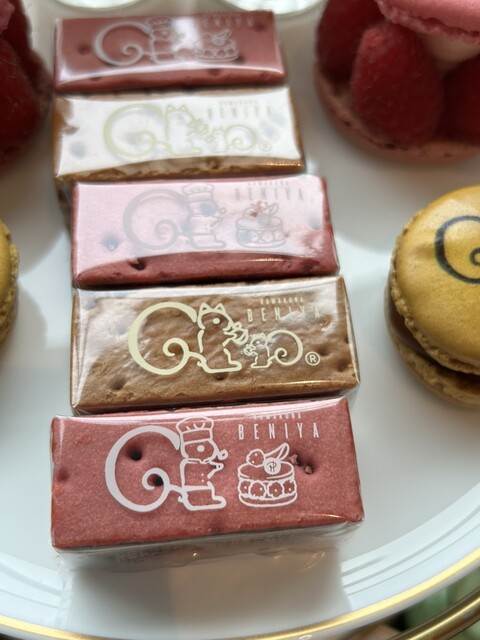 ピンクのくるみっ子、くるみっ子リスのマカロンが可愛いー!食べちゃうのがもったいない。スコーンのお供のキャラメルとマスカルポーネのソースがびっくりするほど美味しかったです。