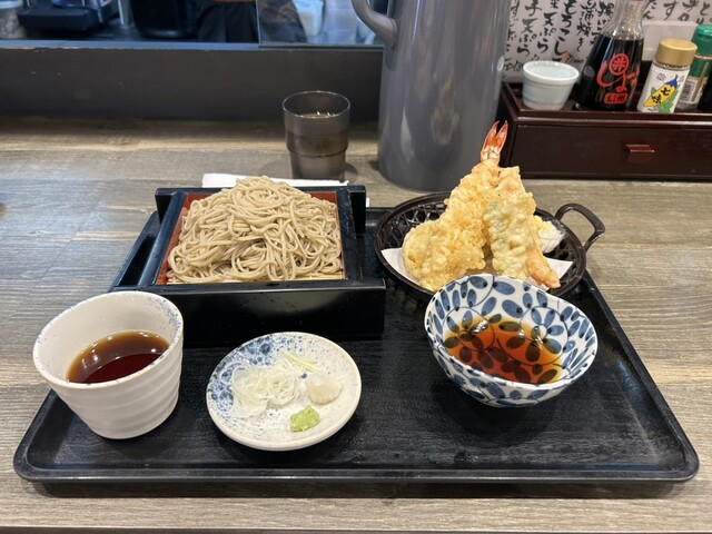 お蕎麦は北海道産…?+200円で長野産の十割蕎麦に変更できるので(限定らしいです)、迷わず選択。天ざるの一番リーズナブルな価格のお蕎麦、十割蕎麦に変更で、約1,700円でしたが、天ぷらが揚げたてで野菜がとにかく美味しい。えびもしっかりしてる。もちろんお蕎麦もしゃきっとしてのどごしがよく、大満足でした。