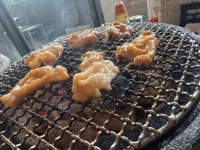 私たちは昼呑みしたく通常メニューにて注文、上タン、ハラミ、だいちゃん、レバー、ハツ、とかなり注文しましたがかなりクオリティーの高いお肉で味がいいもんだから酒が進む進む!!。