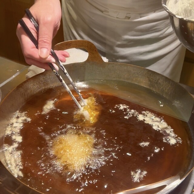 落ち着いた和の空間で、一つひとつ丁寧に揚げられる天ぷらは、
