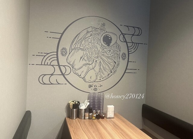 メニューの写真は撮り忘れていましたが、壁に《ぐり虎》のイラストあり、そちらは写真撮っていました。ラーメン屋さんで店舗名が印刷された壁は初めて見ました。