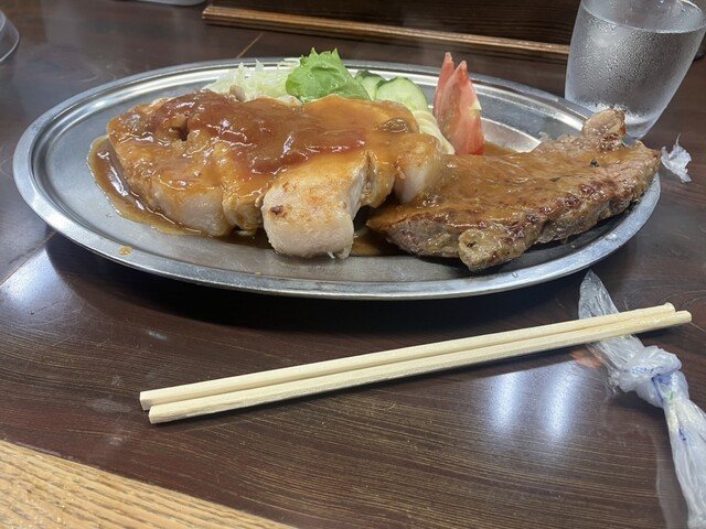 柔らかくジューシーなポークチャップと肉厚で食べ応えのあるステーキはガチの肉好きにはたまらない美味しさだと感じました。
