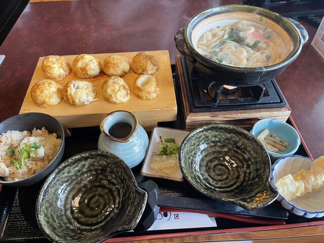 いつも頼むメニューと違って季節的に鍋焼きうどんがあったので玉子焼メインのセットを注文
