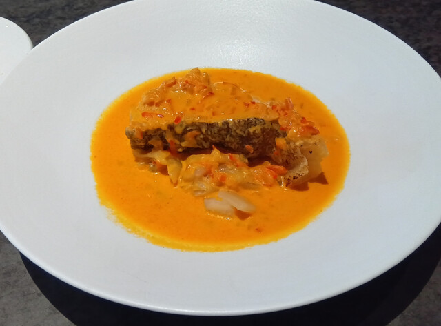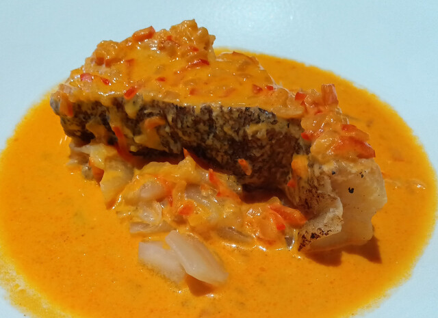 タラの蒸し焼き オマール海老とパプリカ風味のソース