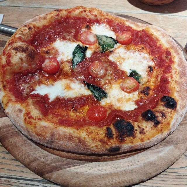 和風スパゲッティは期待通りのあっさりめ、しかしオイルの味はしっかりきいた一品。マルゲリータは王道窯焼きピザという感じで、がっつりめに塗られたトマトソースがボリューミーで美味でした。