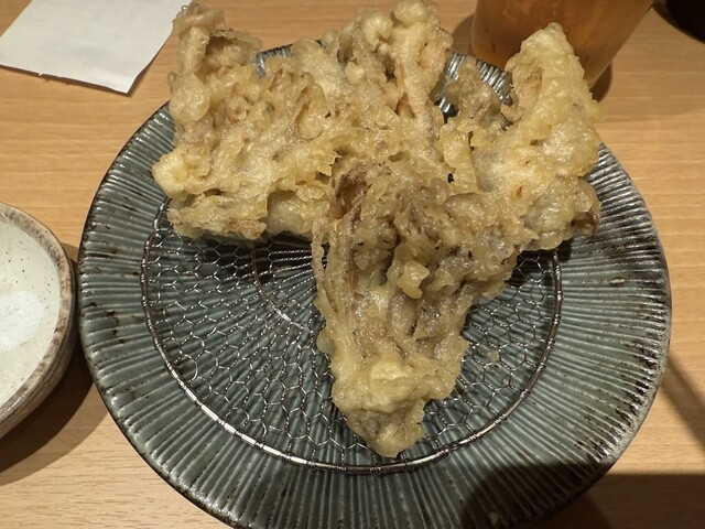 舞茸の天ぷらにちょっと塩をまぶしていただきます