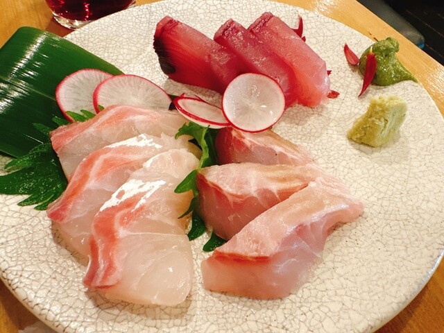 乾杯はワインでしたけど、お刺身から日本酒へ。