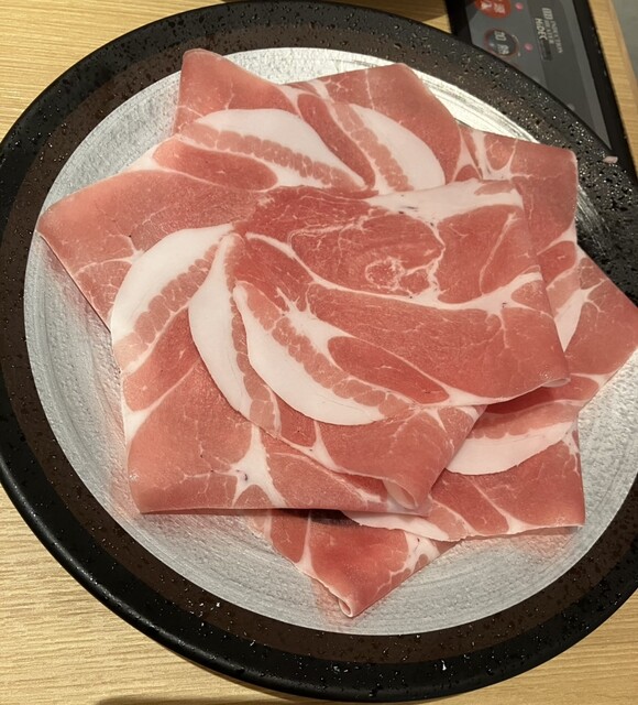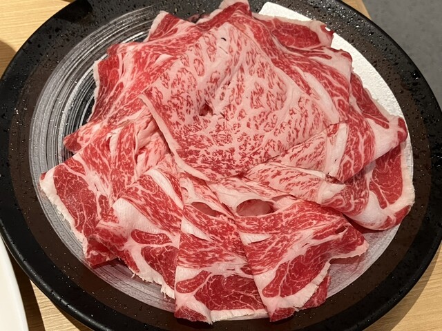 黒毛和牛肩ロースは、コースでいただけるお肉の中で最も霜が降っていました。1枚のお皿にこれでもかと贅沢にかつ華やかに盛られて提供いただけます。しゃぶしゃぶであるため、お肉1枚1枚は薄いですが、口に入れた瞬間、黒毛和牛が一瞬で溶けてなくなる感覚がありました。また、しっかりと黒毛和牛の旨味もお肉1枚にギュッと凝縮されているため、牛肉本来の味を堪能することができました。こんなにいい黒毛和牛が食べ放題のため、しゃぶしゃぶ食べ放題のチェーン店の中でも1番クオリティが良いと思いました。