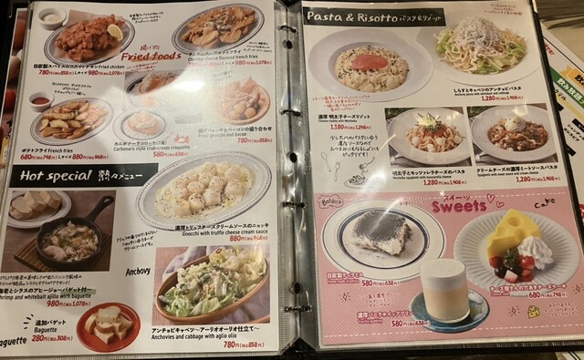 店内は洋風な内装をしており、テーブル席が約10個ほどありました。休日の夕方に来店しました。若い女性団体客が多く、店内には話し声が響いていました。男性のお客さんもいらっしゃいましたが、女性と一緒に来店されている方が殆どでした。夜に近づくにつれて、店内が少し混み始めてきたため、来店する際は予約することをオススメします。