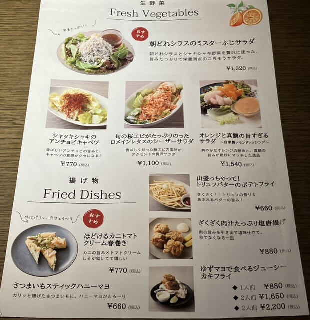 空いたお皿に直ぐ気付き、下げていただけたり、お箸を落としてしまった際には直ぐに新しいお箸を用意していただけたり、メニュー1品1品について、丁寧に説明をしていただけたり等、お客さんへの気配りがとてもできたお店でしたため、接客は申し分なかったです。