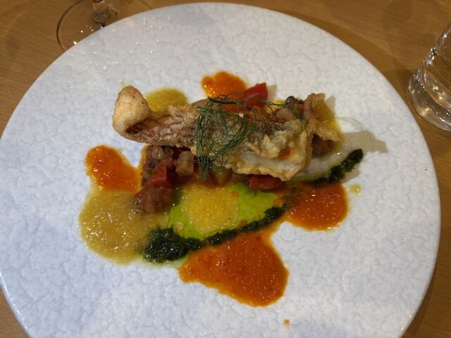 継いで鴨のロースト、鯛のフリットと完璧な当たりの連続安打ですがな!