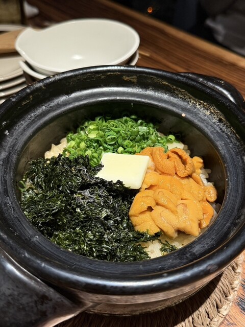 北海道産のむらさき雲丹、龍の瞳のお米にバターがアクセント!お腹いっぱいでも外せない。