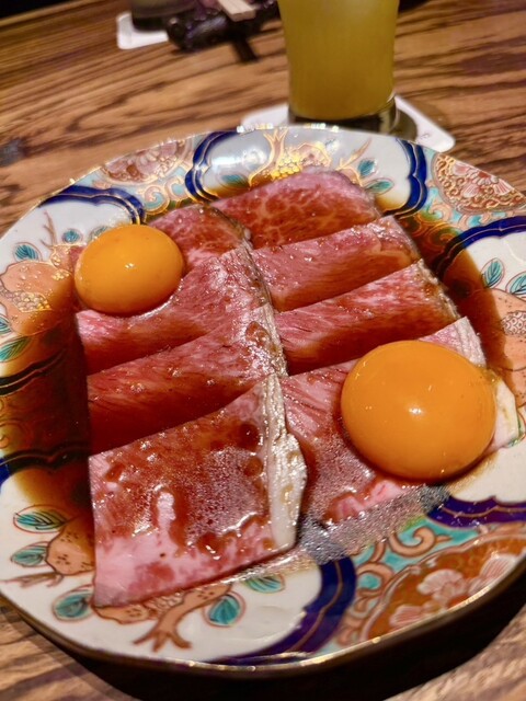 柔らかてとろける食感。甘めタレと卵黄を絡めて頂きます。