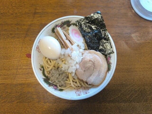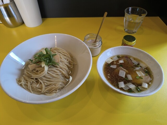 先日、別のお店で塩ラーメンを食べた時、スープに深みが無く口が物足りなかったので、今日は塩ラーメンチャーシュー増しに和え麺の食券を購入。